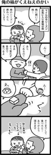 好物を人にあげちゃうマイル。もちろん全部はくれないですけど、いくつかくれます。 一緒に食べて欲しいんですよね…きっと。 でも、まだ一人ではちゃんとゴハンが食べられないのでズラしたほうが公立がよく…。こどものゴハンの後、お腹いっぱいになってもら…