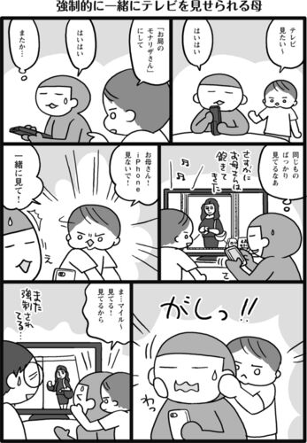 はまると同じものばっかり見る息子。それでもお母さんはだいぶ付き合うんですけど……でも、息子が好きなモノ見てる間にちょっとくらいスマホ見ても…よくない…?さんざん付き合っても、いつも付き合わねばならない…。ちなみに、お父さんはこれやられないです。…