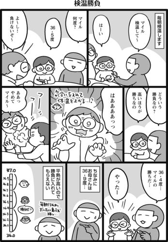 毎朝やってます。そして私は平熱が高いので入れてもらえない…。基本的に息子が勝つだけの儀式。お父さんは、下手すると36度を切る男…。 お知らせコーナー マイナビの連載です 自分が話を聞きたいとき以外でも、話を聞かないと、自分の話をしてくれなくなると…
