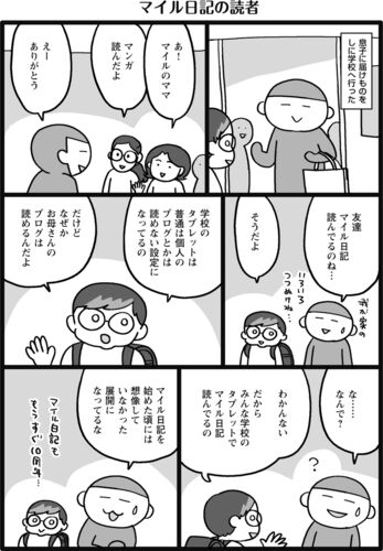 今日、このマンガを見せたところ「どうしてお母さんのブログが読めるのか理由がわかった」って言ってましたが……理由は教えてもらえませんでした。ていうか、そろそろマイル日記10周年なんですよ。生まれてからしばらくして子育て記録を始めて10年…。な、なが…